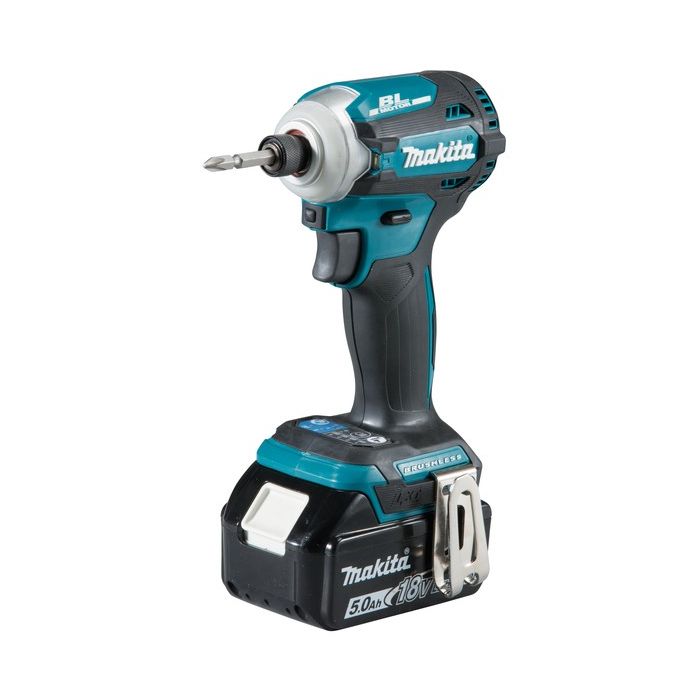 BLDC - bezszczotkowy silnik prądu stałego Technologia XPT - podwyższona odporność na pył i wilgoć 4-stopniowy elektroniczny przełącznik prędkości obrotowej i częstotliwości udarów Regulacja prędkości obrotowej spustem włącznika 4 opcje asystenta wkręcania: - Tryb pracy "A" - w tym trybie narzędzie rozpoczyna wkręcanie z małą prędkością, a następnie włącza udar i zwiększa prędkość aż do uzyskania max. prędkości - Tryb pracy "T" dla grubej blachy metalowej - specjalny tryb do optymalnego i szybkiego wkręcania śrub samowiercących - Tryb pracy "T" dla cienkiej blachy - urządzenie zatrzymuje się automatycznie po wykonaniu 3 udarów - Tryb śruby - przy obrotach wstecznych - zatrzymuje udar oraz obroty do tyłu w czasie 0,2 s od momentu wystarczającego poluzowania śruby lub nakrętki, podczas wykręcania - skok spustu włącznika potrzebny do osiągnięcia maksymalnej prędkości obrotowej zmniejszony został do 1/3 Funkcja szybkiej zmiany trybu 2 diody LED oświetlające obszar roboczy z funkcją opóźnionego wygaszania umieszczone po obu stronach obudowy Maksymalny moment obrotowy - 180 Nm Ergonomicznie zaprojektowany uchwyt pokryty elastomerem Dostarczana w walizce systemowej MAKPAC z 2 akumulatorami BL1850B (18 V / 5,0 Ah) i ładowarką